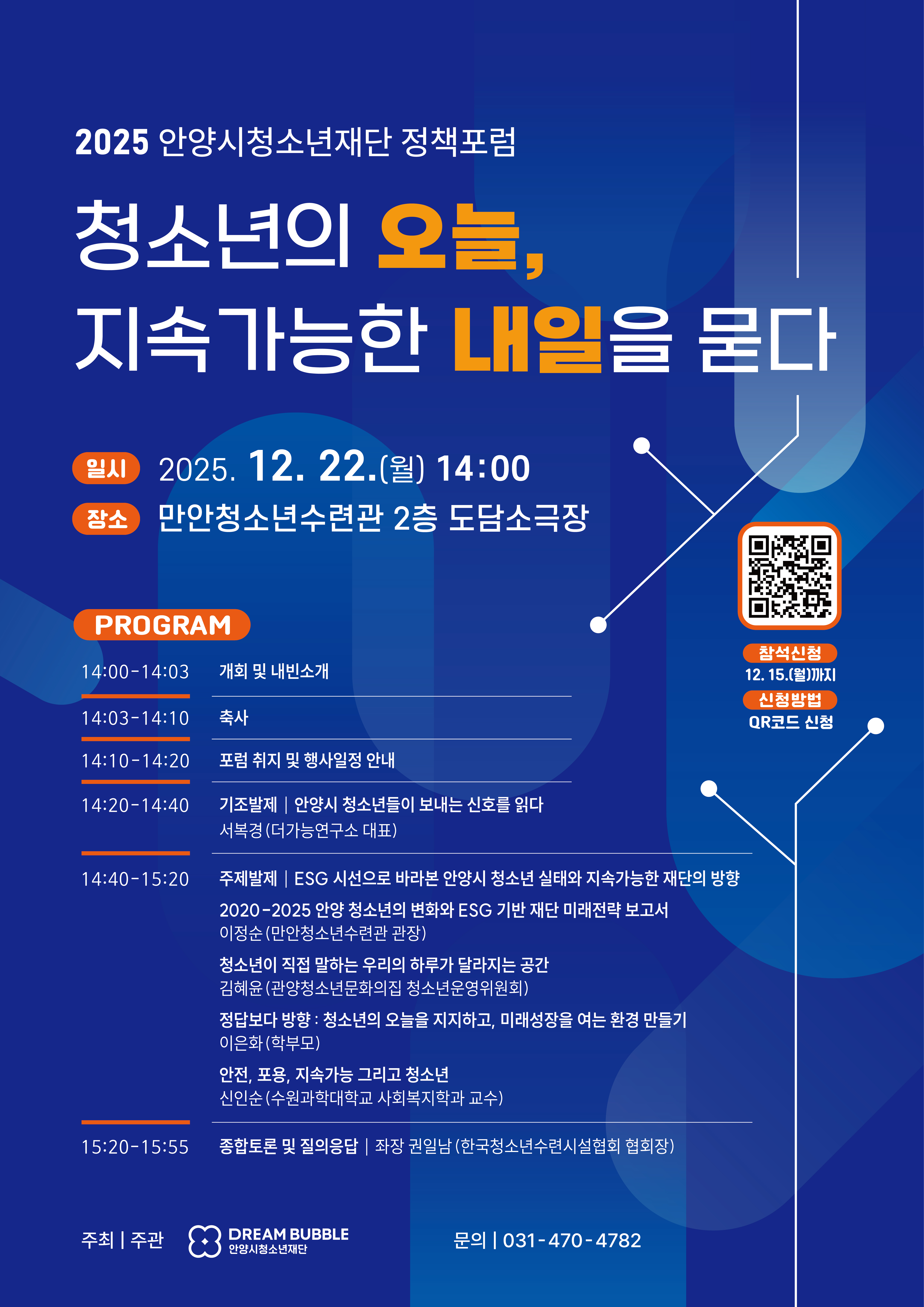 2025 안양시청소년재단 정책포럼 '청소년의 오늘, 지속가능한 내일을 묻다' 개최 안내
