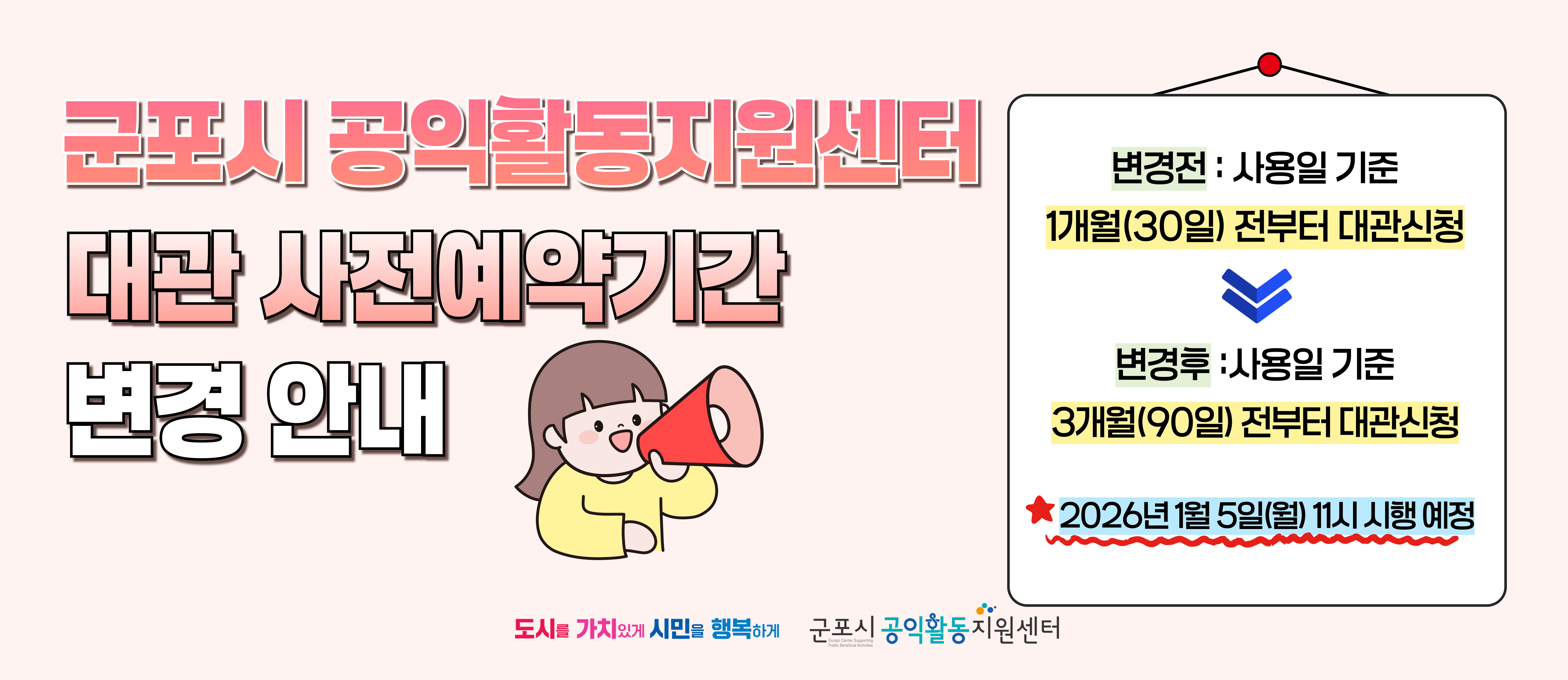군포시 공익활동지원센터 대관 사전예약기간 변경 안내