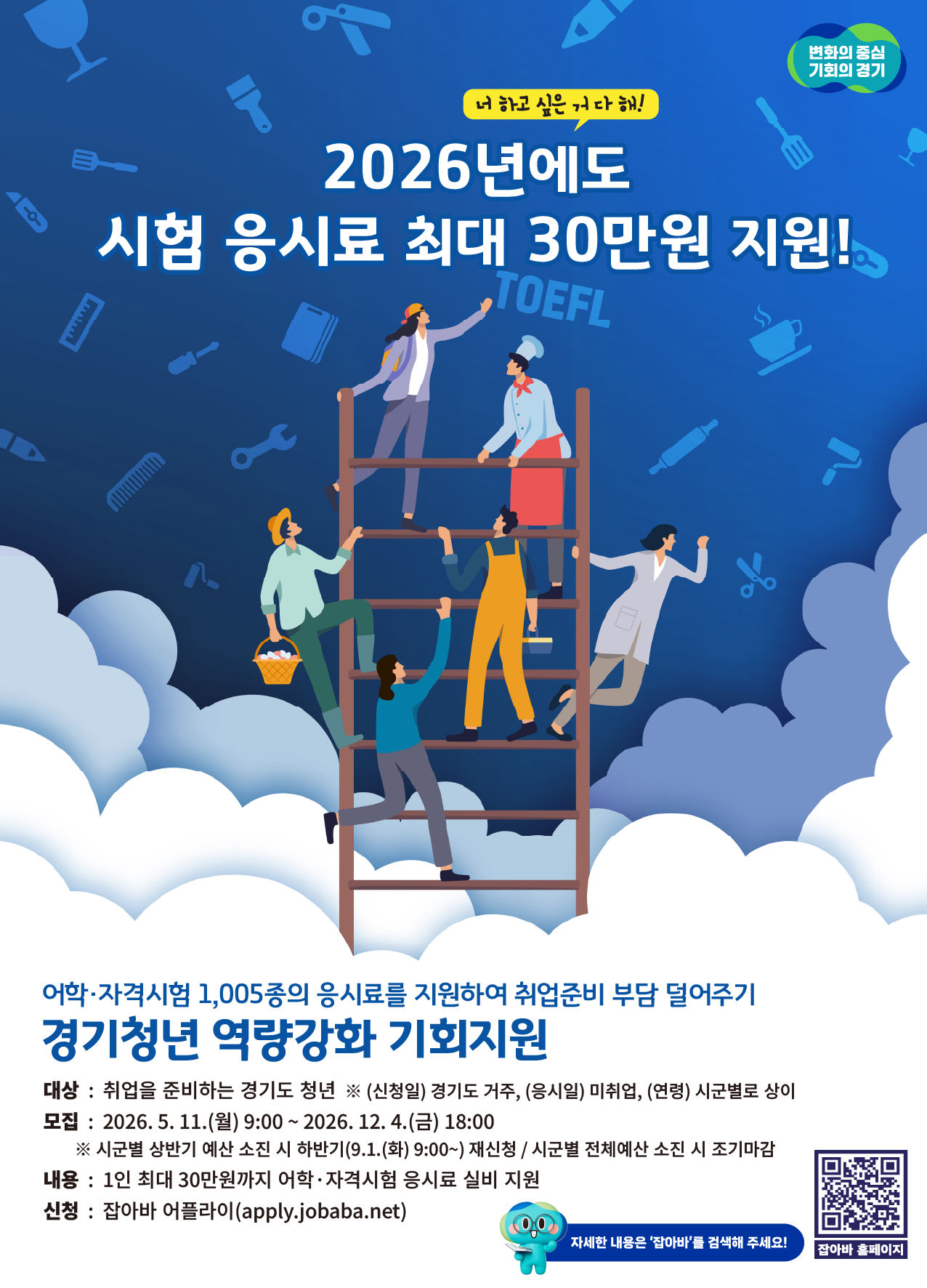 「2026년 경기청년 역량강화 기회 지원사업」어학·자격시험 응시료 지원 대상자 모집 안내