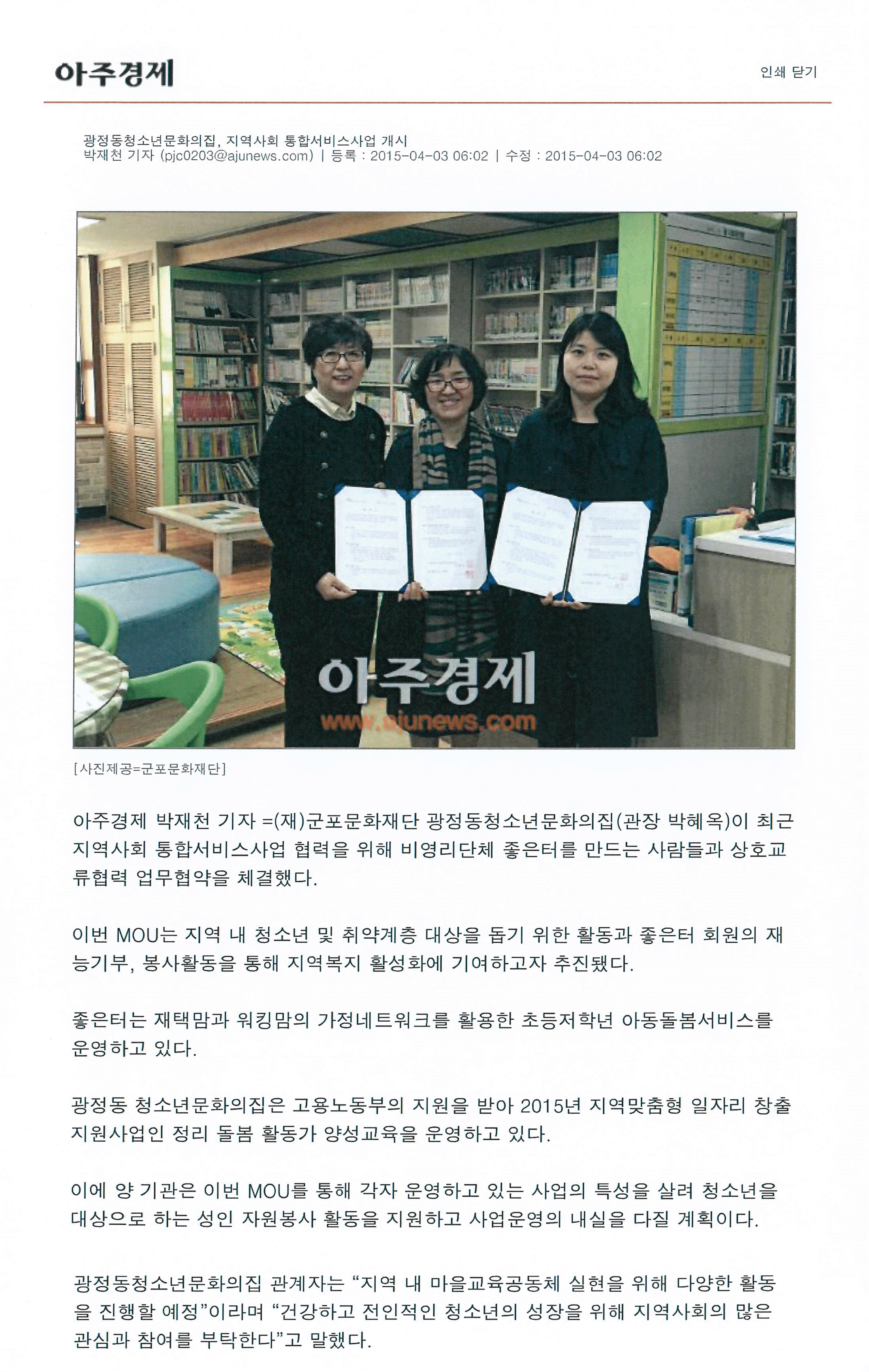 광정 문화의집, 청소년 동아리 모집 27일까지 댄스·밴드·마술 등 대상김장선 기자 | kjs76@kgnews.co.kr | 경기일보 군포문화재단 광정동청소년문화의집은 오는 27일까지 2015년 청소년동아리를 신규 모집한다.광정동청소년문화의집 동아리로 모집되면 ▲문화의집 시설이용 대관 ▲문화의집 내부 공연 기회제공 및 다양한 축제참가 ▲동아리연합공연 및 동아리연합캠프를 통한 동아리간 교류 지원 혜택을 받게 된다.동아리 회원 모집 분야는 댄스동아리, 밴드, 마술동아리, 자원봉사동아리, 연극동아리 등으로, 신설 동아리 신청도 가능하다.대상은 지역내 타기관에 소속돼 있지 않고 꾸준히 활동할 수 있는 동아리로, 가입 희망자는 홈페이지(www.ggyp.or.kr)에서 신청서를 다운받은 후 이메일(gjycc21@hahnmail.net)로 접수하면 된다. (문의: 031-390-1483)