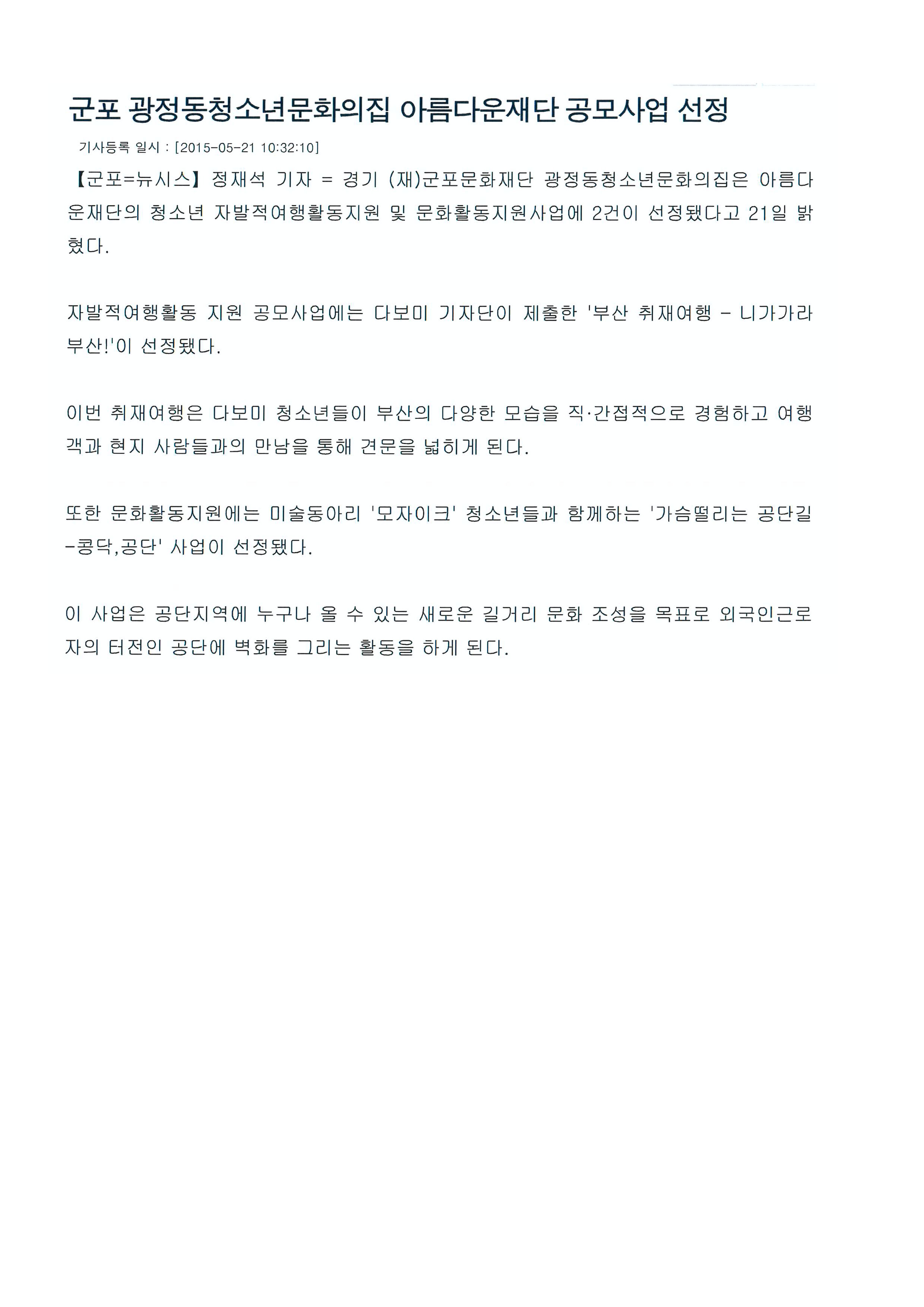 "청소년의 오늘, 문화의집 이야기로 만나보세요"