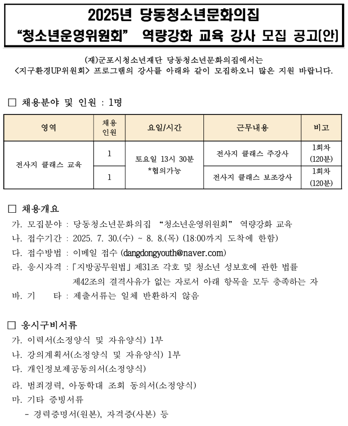 붙임1 이력서 및 강의계획서.hwp 붙임2 개인정보보호를 위한 개인정보 수집·이용·제공 동의서.hwp 붙임3 범죄경력, 아동학대 조회 동의서.hwp