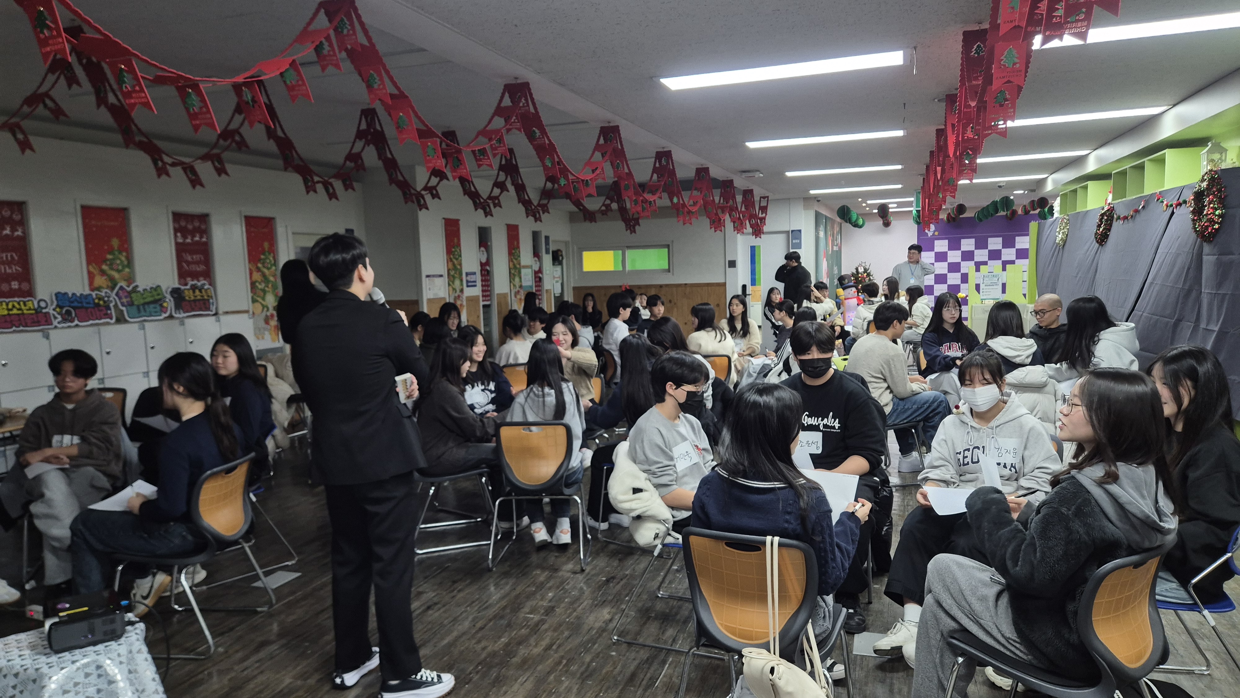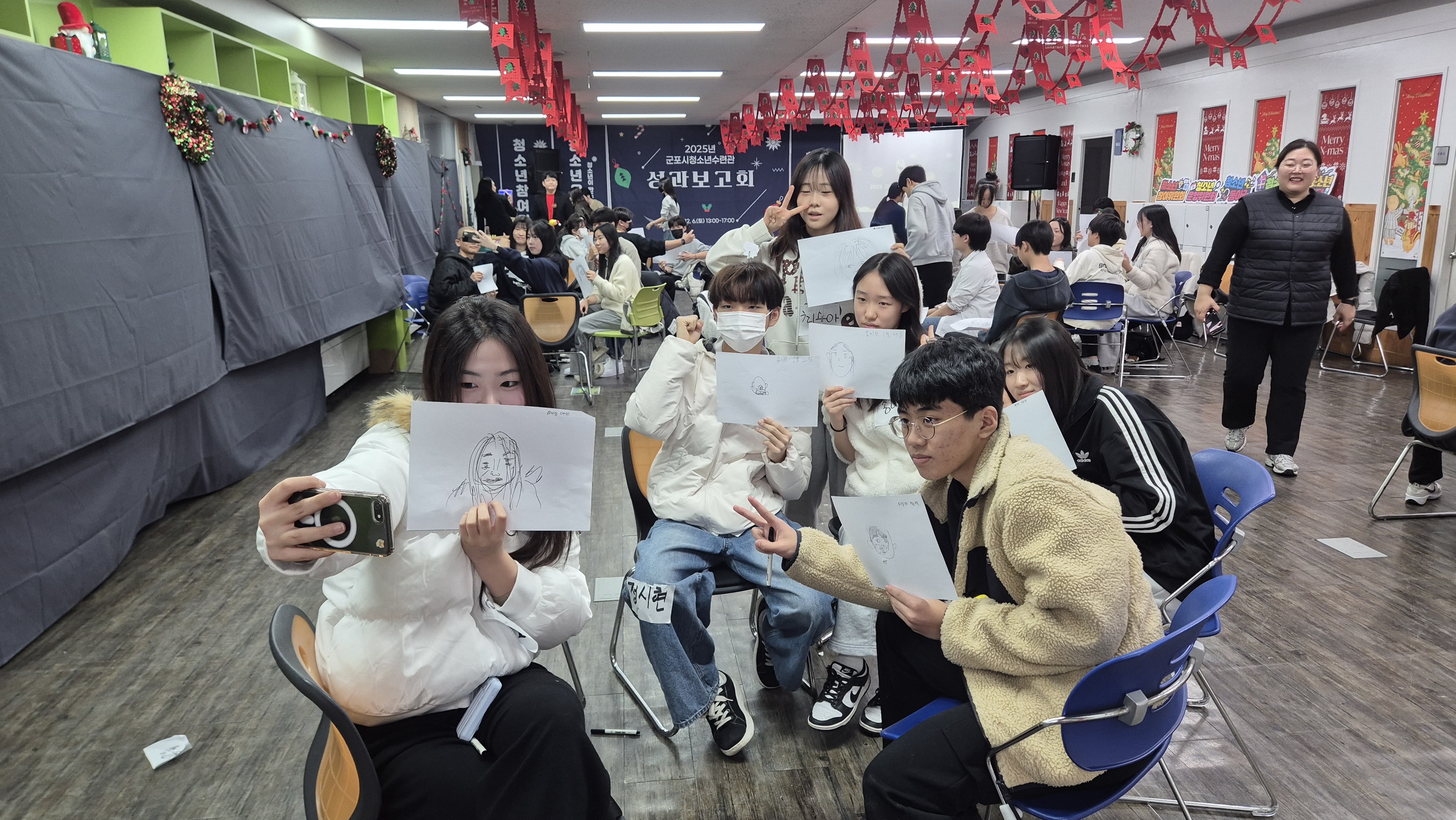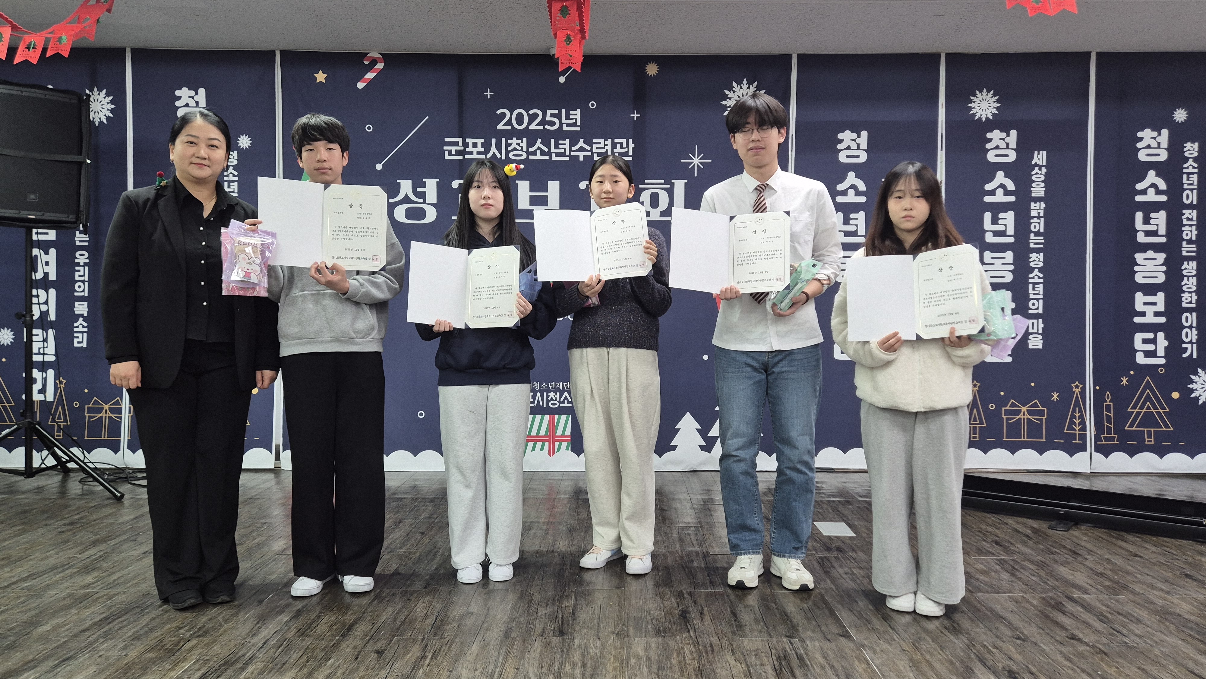 군포시청소년수련관 소속 5개 자치 조직(청소년참여위원회, 청소년운영위원회, 청소년동아리연합회, 청소년홍보단, 청소년봉사단) 청소년이 함께 모여, 자치 조직 성과보고회를 실시하였습니다. 자치 조직별 활동 사업 보고, 우수 청소년 시상, 레크리에이션 및 팀빌딩, 맛있는 식사 및 친교, 다양한 이벤트(인생네컷) 등을 준비하여 청소년들과 마지막 유종의 미를 거두었습니다. 2026년에도 군포시청소년수련관 자치 조직 활동을 기대합니다! 화이팅!!! 2025. 12. 6.(토) |