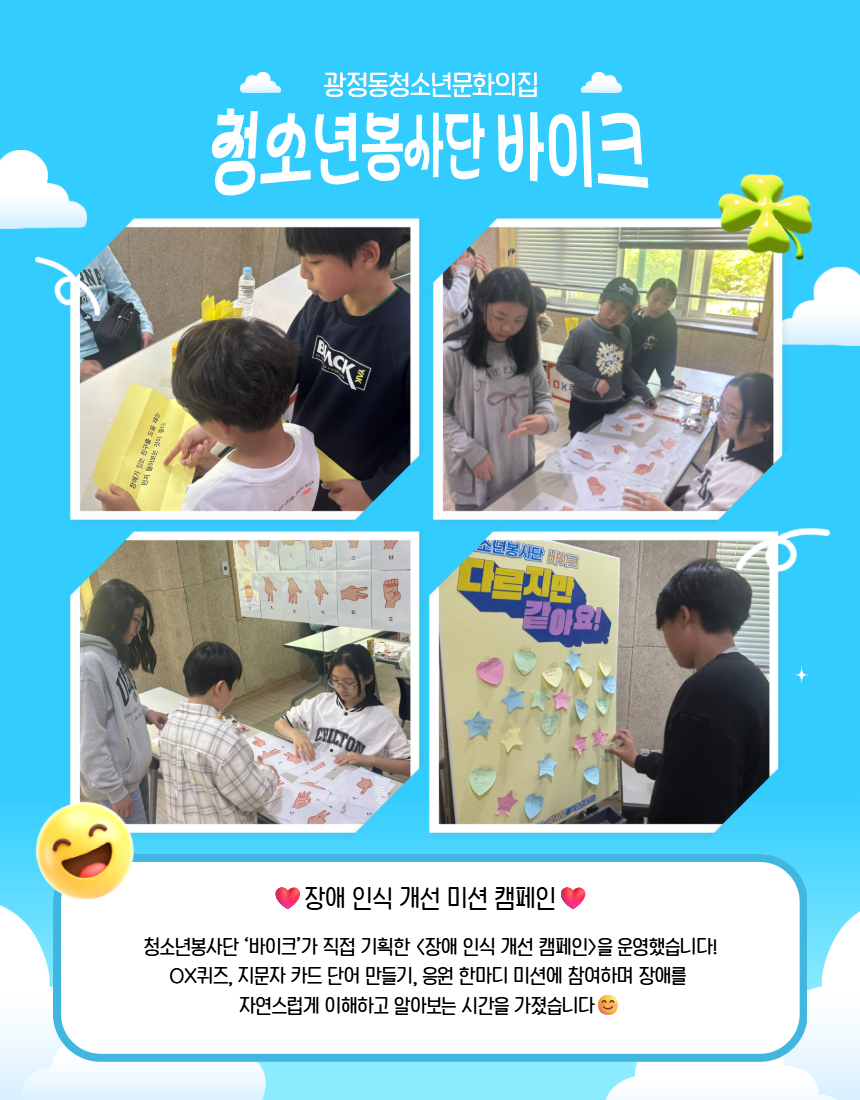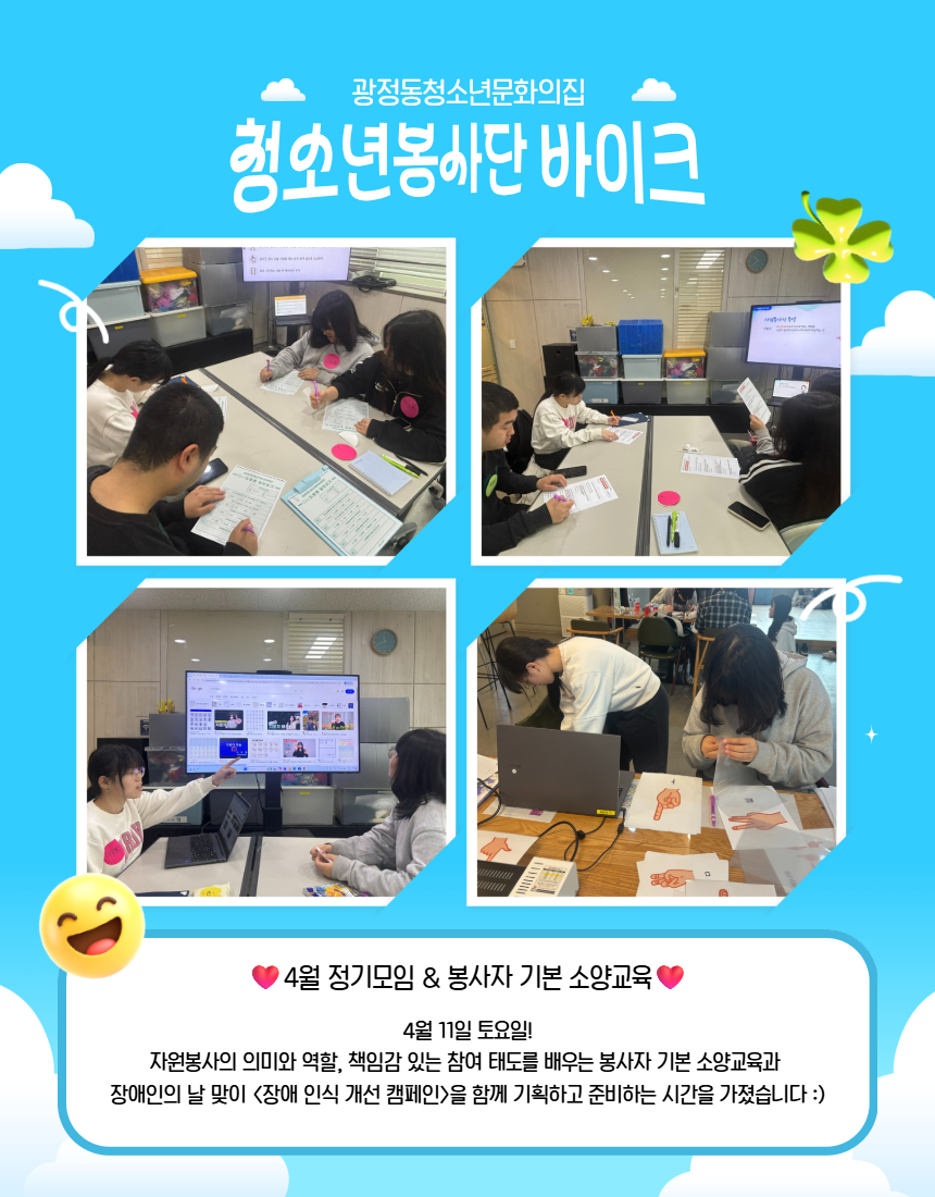 2026년 광정동청소년문화의집 청소년봉사단 '바이크' 4월 활동 공유