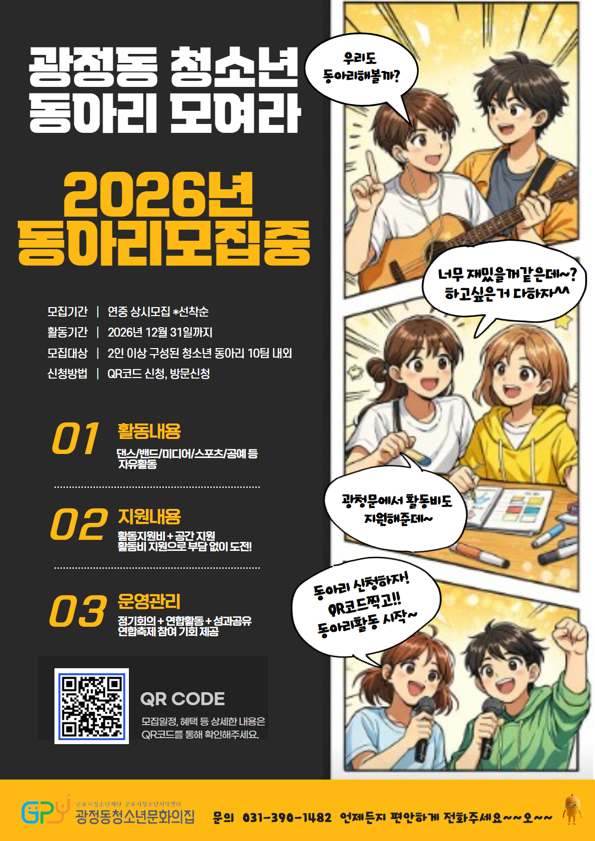 [모집] 2026년 광정동청소년문화의집 청소년동아리 '놀.아.청' 모집