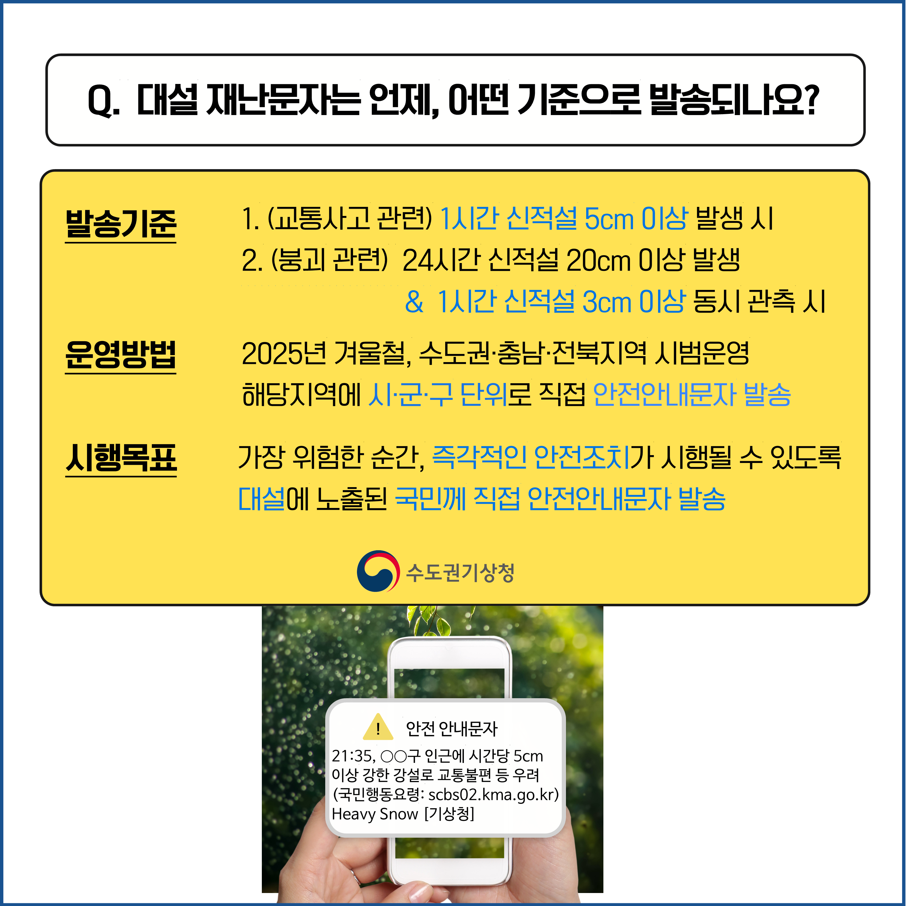 [안내] 수도권 대설 재난문자 서비스 시범운영 실시 (’25.12.1.부터)
