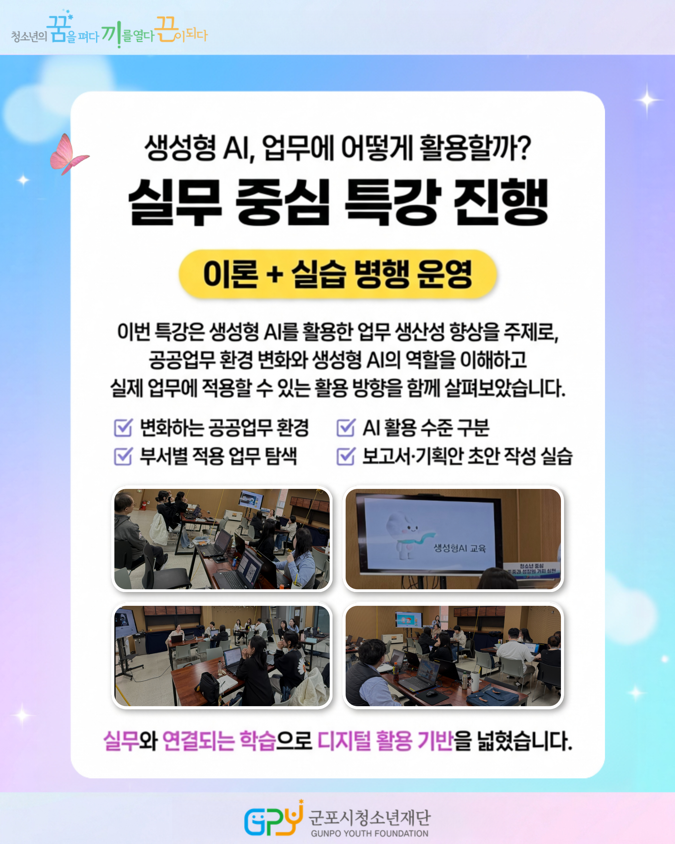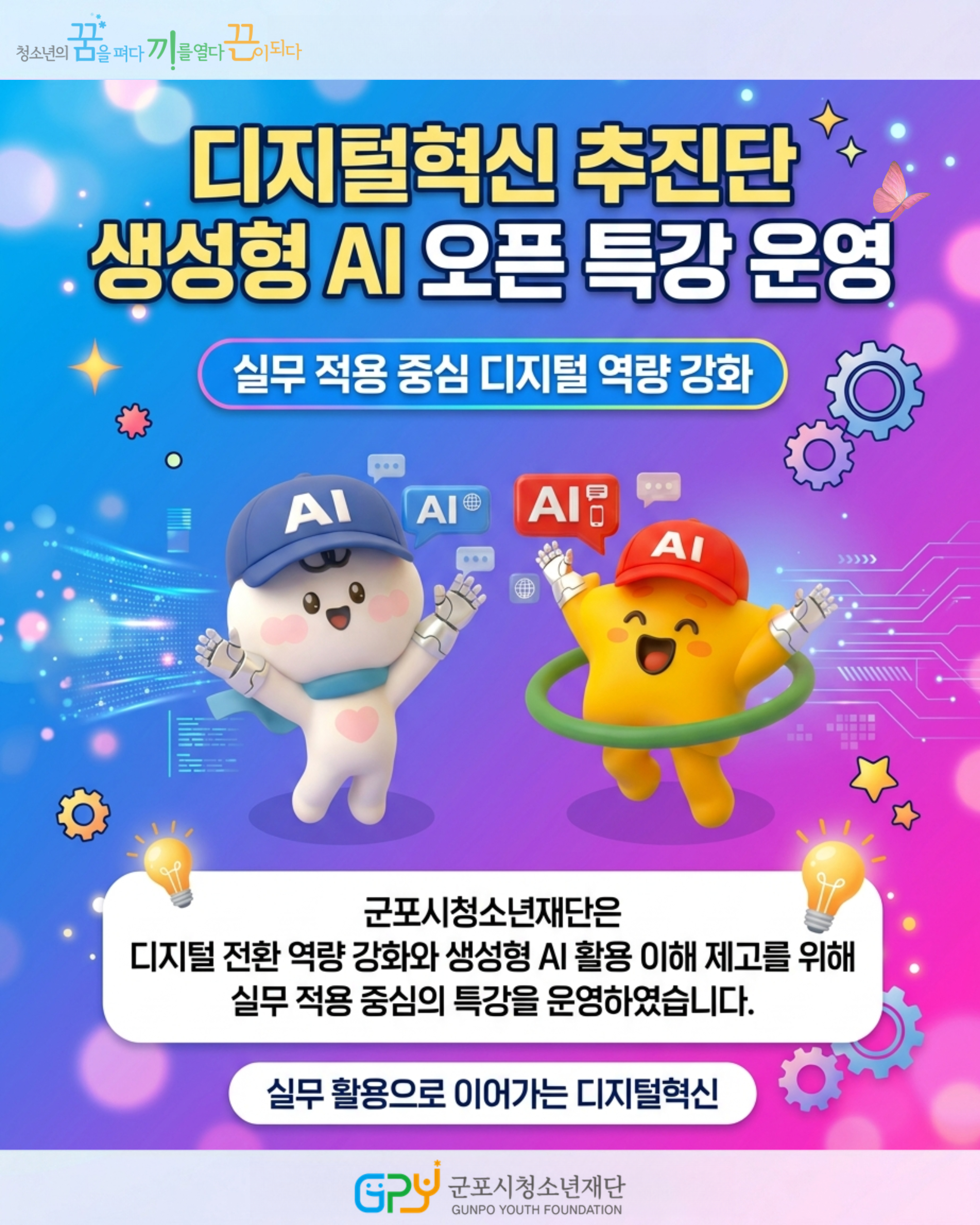 | 군포시청소년재단, 대표이사와 함께 디지털혁신 추진단 생성형 AI 오픈 특강 운영 |