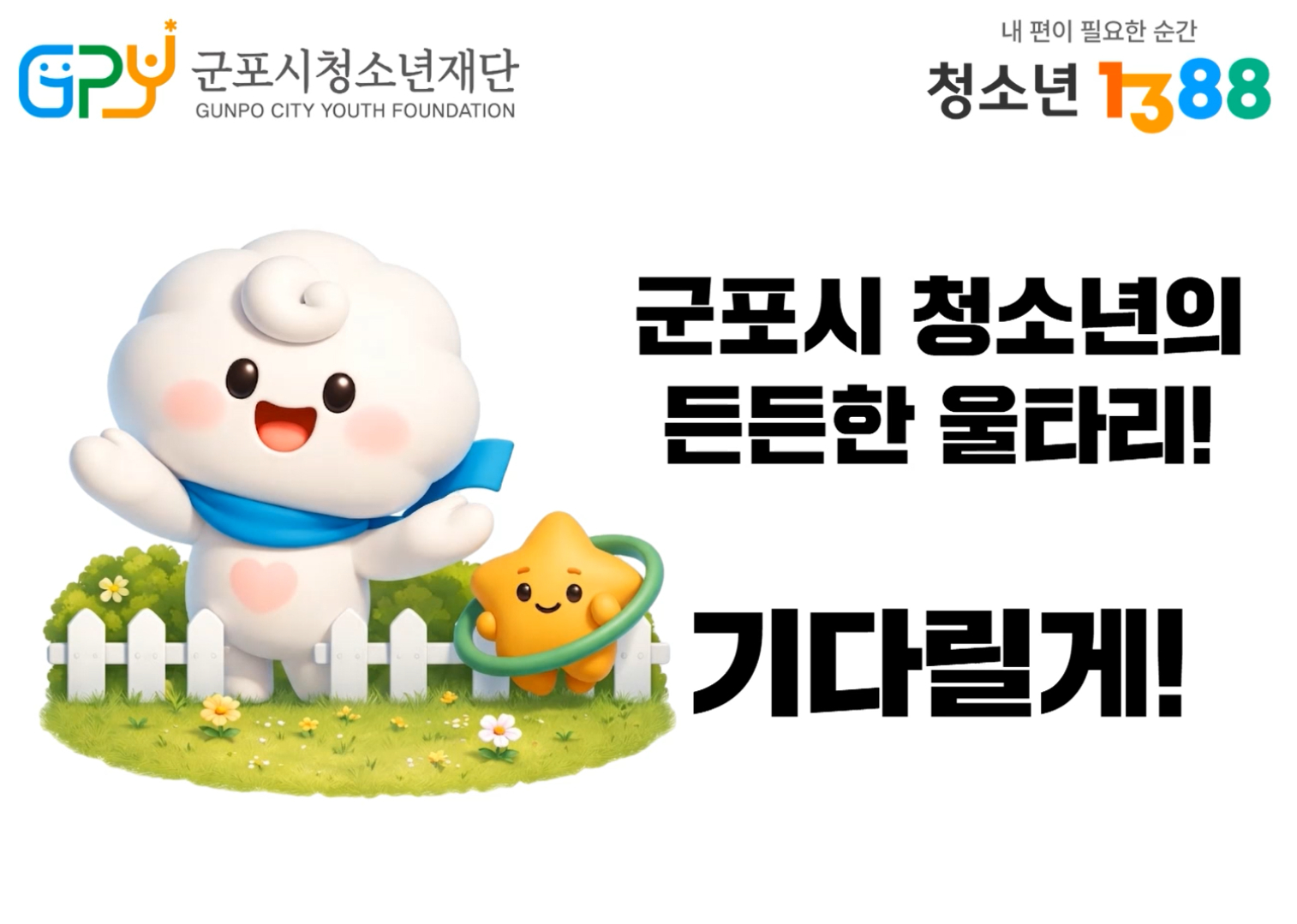 군포시청소년재단에서는 군포시 청소년의 건강한 성장과 복지 증진을 지원하기 위한 군포시청소년상담복지센터를 운영하고 있습니다. 군포시청소년상담복지센터는 청소년이 겪는 다양한 고민과 어려움에 대해 청소년 상담, 심리검사, 놀이 및 미술치료, 복지지원, 학교밖청소년지원 등 맞춤형 서비스를 제공하는 청소년 전문 지원기관입니다. □ 주요 지원내용 - 청소년 상담 - 심리 검사 - 놀이·미술 치료 - 복지 지원 - 학교밖청소년 지원 □ 운영안내 - 위치: 군포시 수리산로 112, 군포시평생학습마을 슬기관 2층 - 문의 및 접수: 031-397-1388 - 청소년전화 1388: 031-1388(24시간 이용 가능) ♥ 군포시 청소년과 보호자 여러분의 많은 관심과 이용 바랍니다 ♥ |