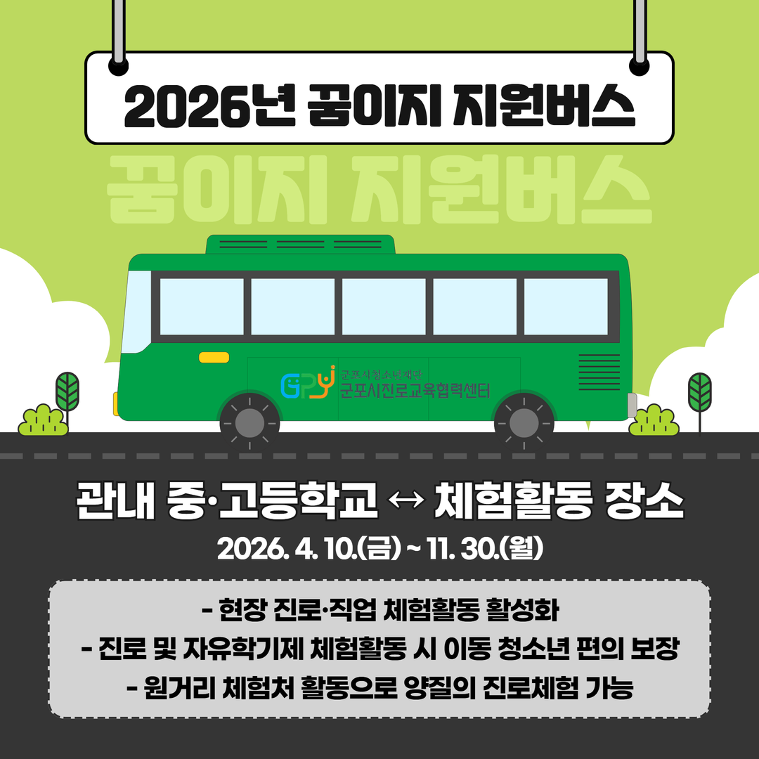 청소년들의 다양한 진로·직업 체험을 위해 이동 편의를 지원합니다!