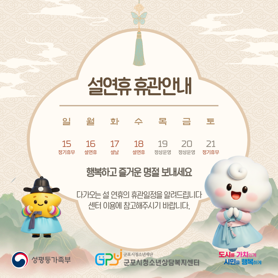 2026년 설연휴 상담복지센터 휴관안내