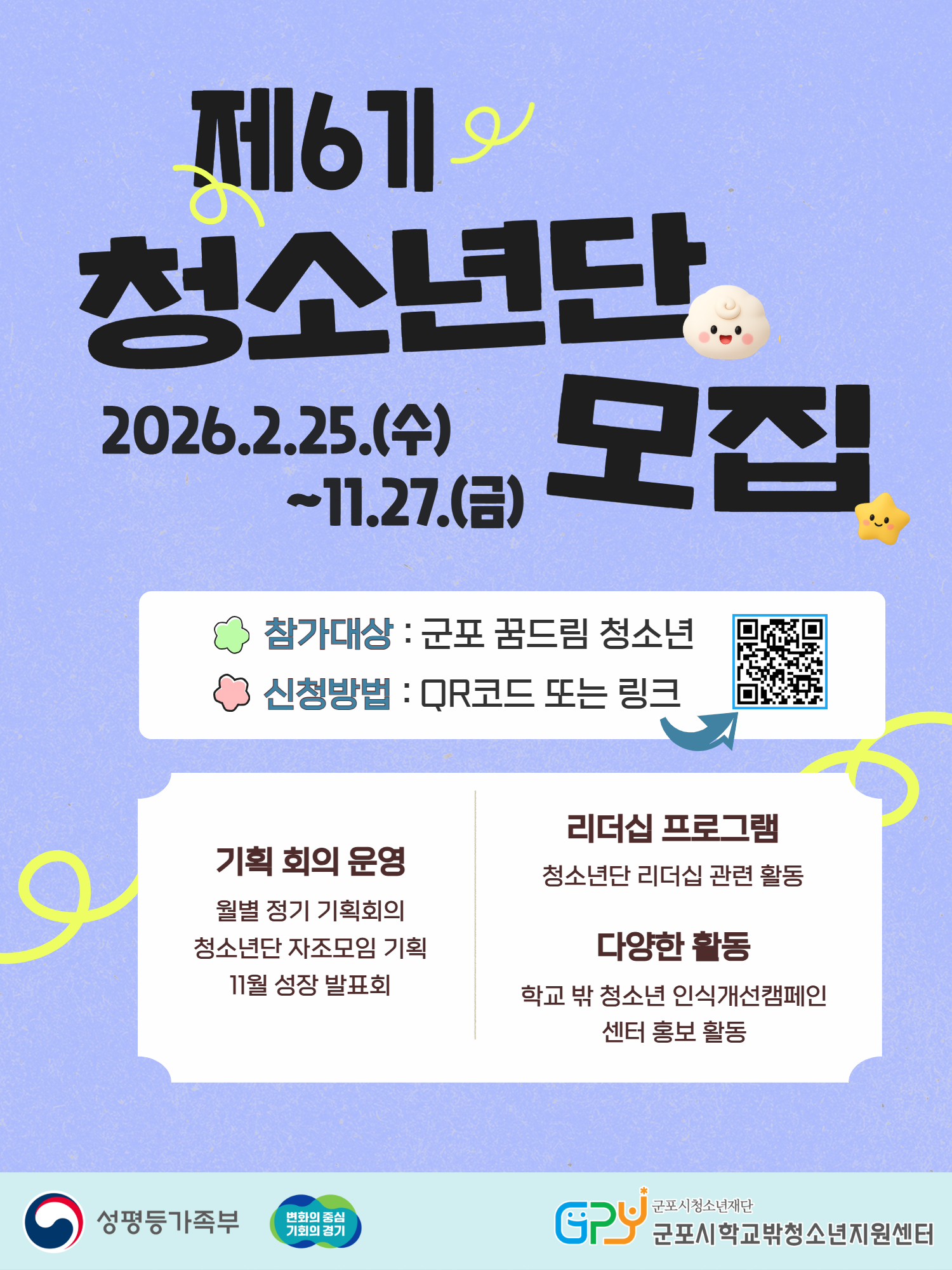 [꿈드림] 2026년 군포시학교밖청소년지원센터 청소년단 6기 모집 안내