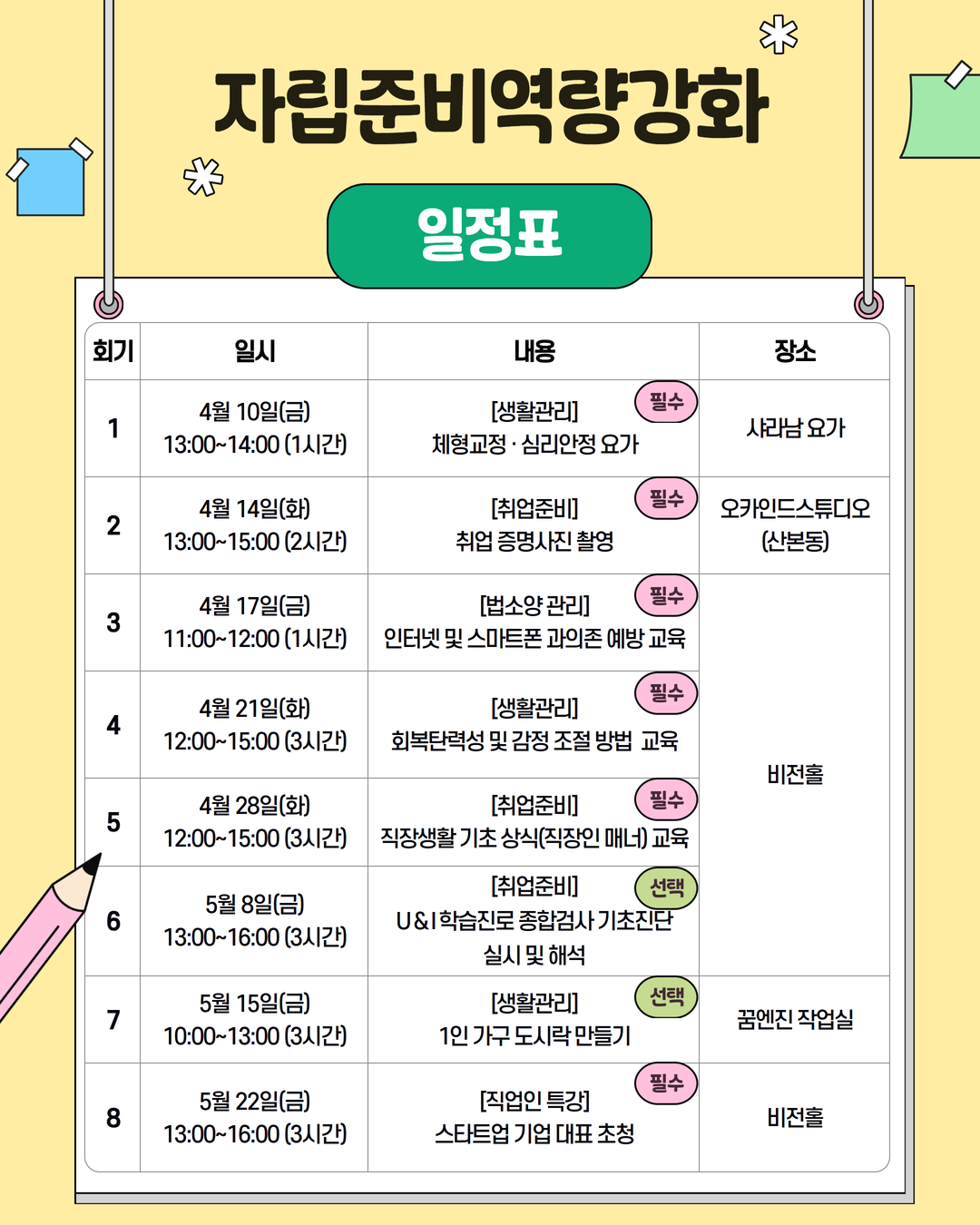 자립을 준비하는 학교 밖 청소년을 대상으로 참여자를 모집합니다.