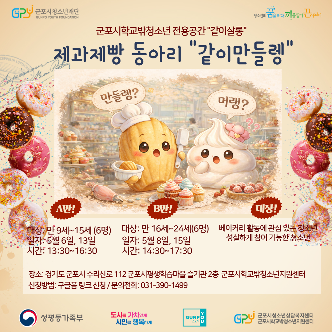 [꿈드림] 2026년 같이살롱 제과제빵동아리[같이만들렝] 참여자 모집 안내