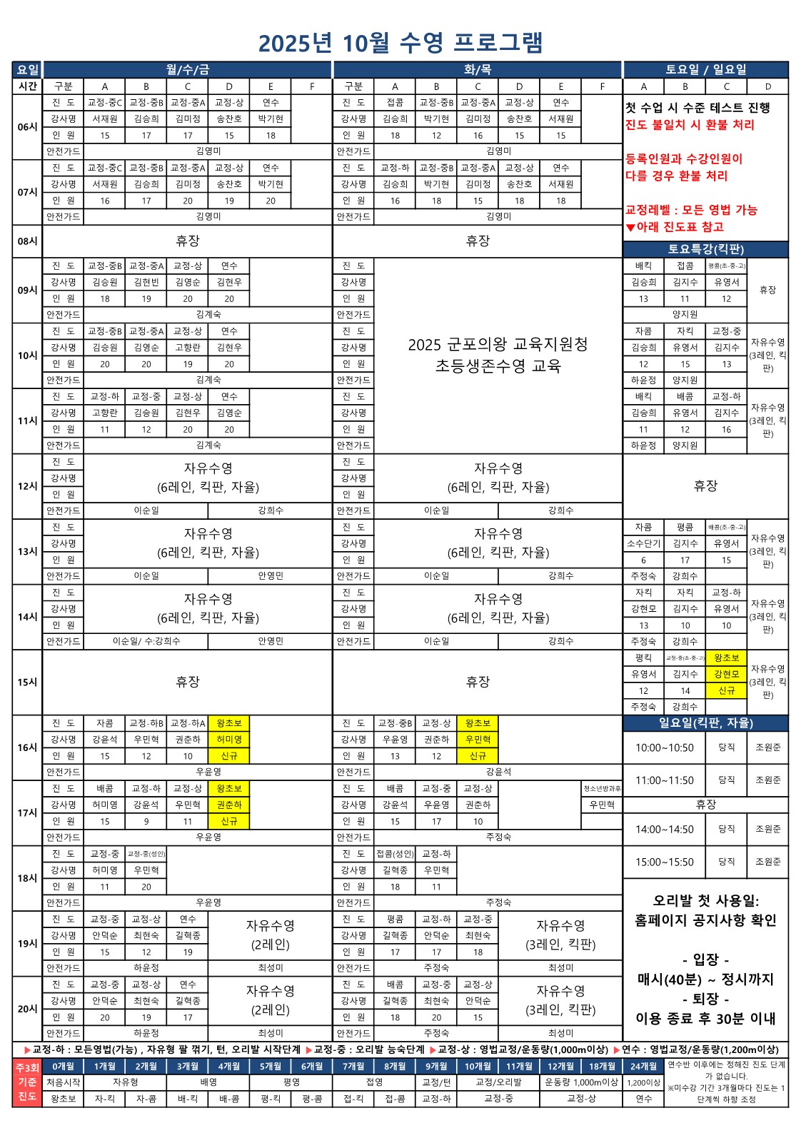 2025년 10월 수영 강좌 기존/신규 프로그램 안내 |