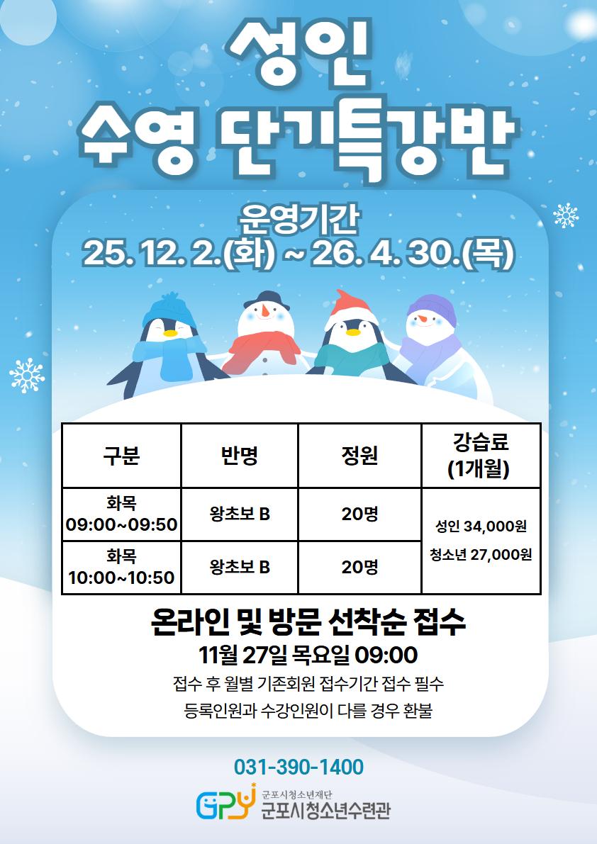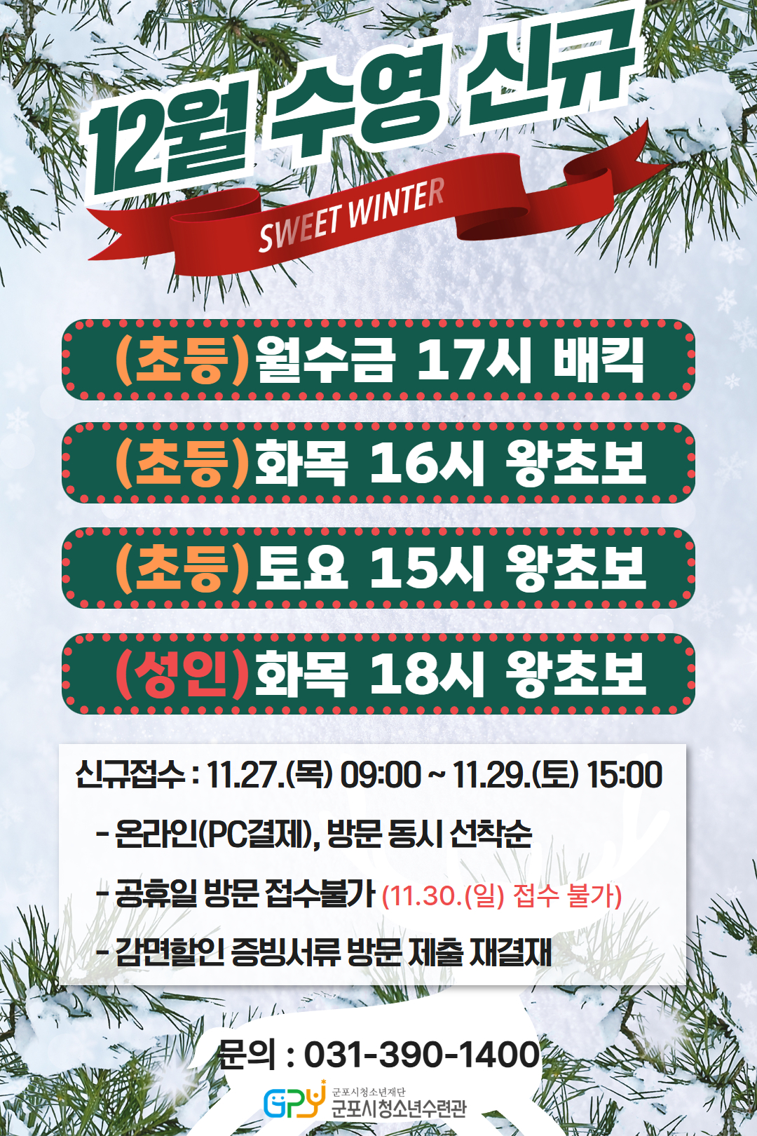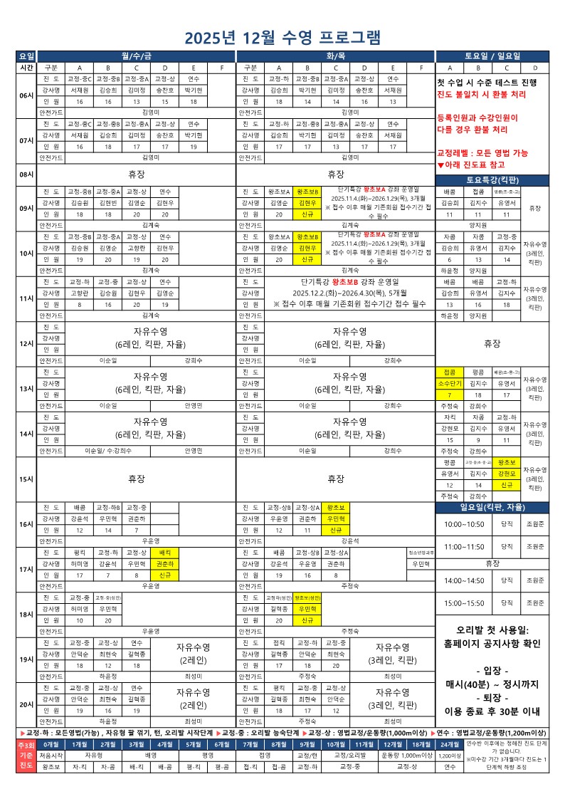 2025년 12월 수영 강좌 기존/신규 프로그램 안내
