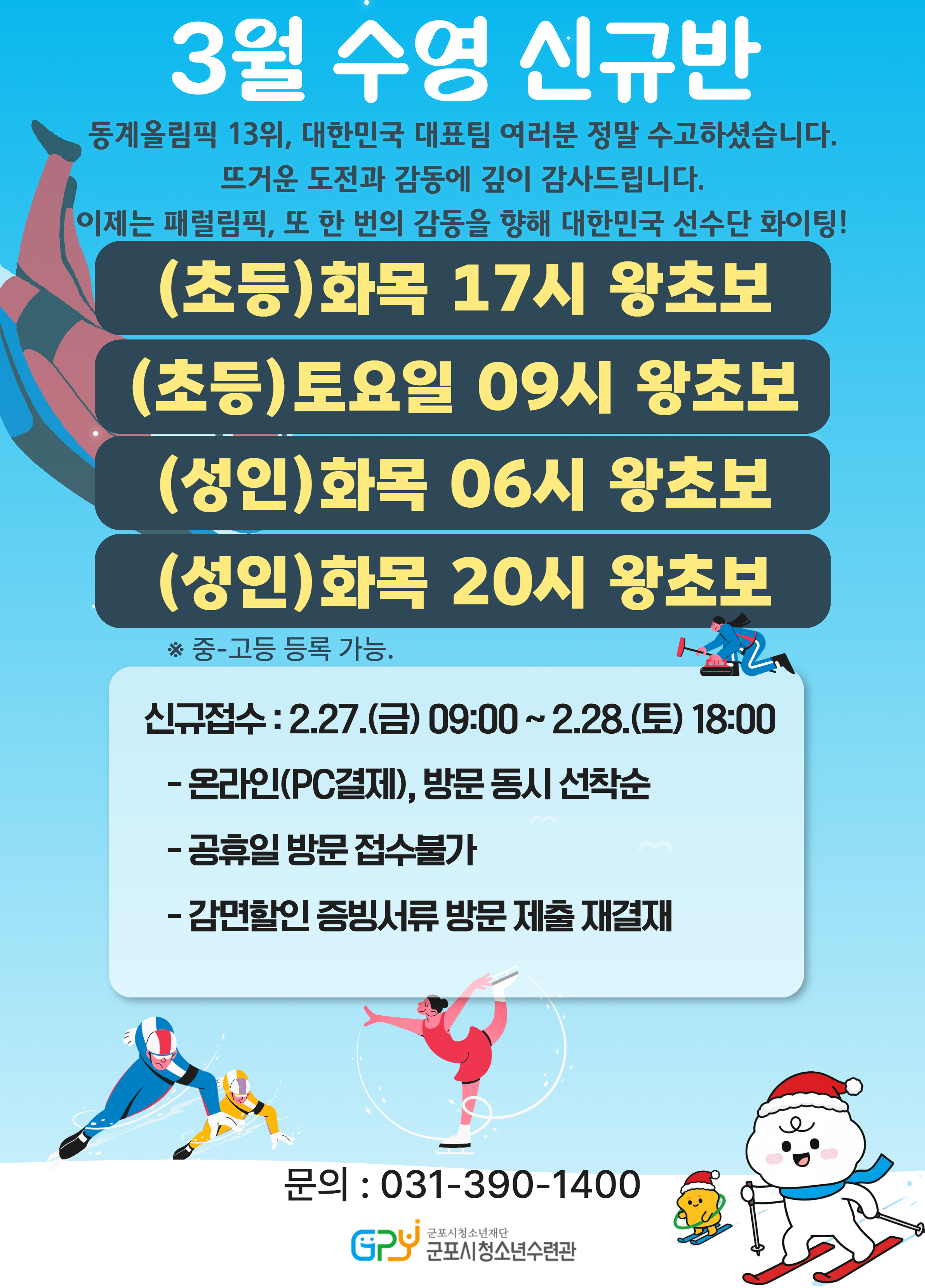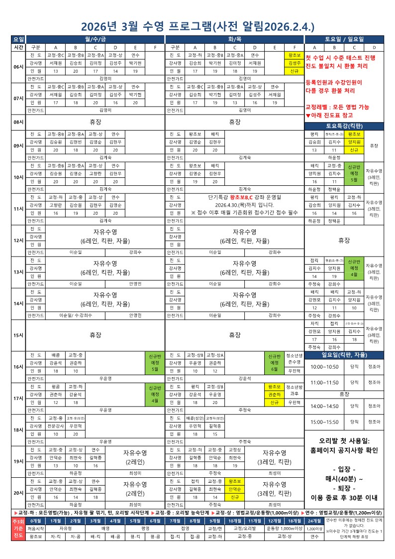 | 2026년 3월 수영 강좌 및 월정기자유수영 프로그램 안내 |